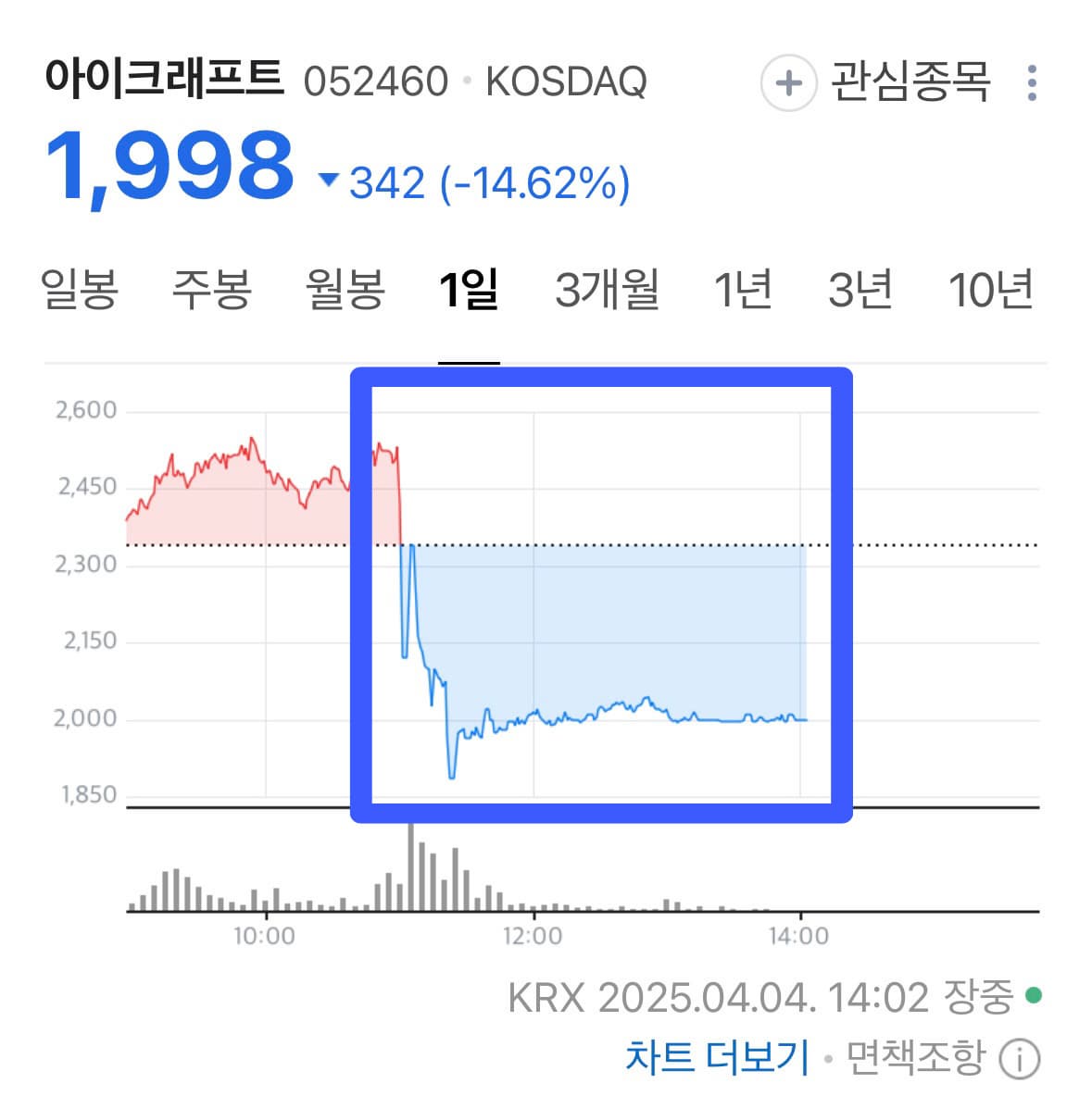 아이크래프트: 하루 만에 -15% 하락