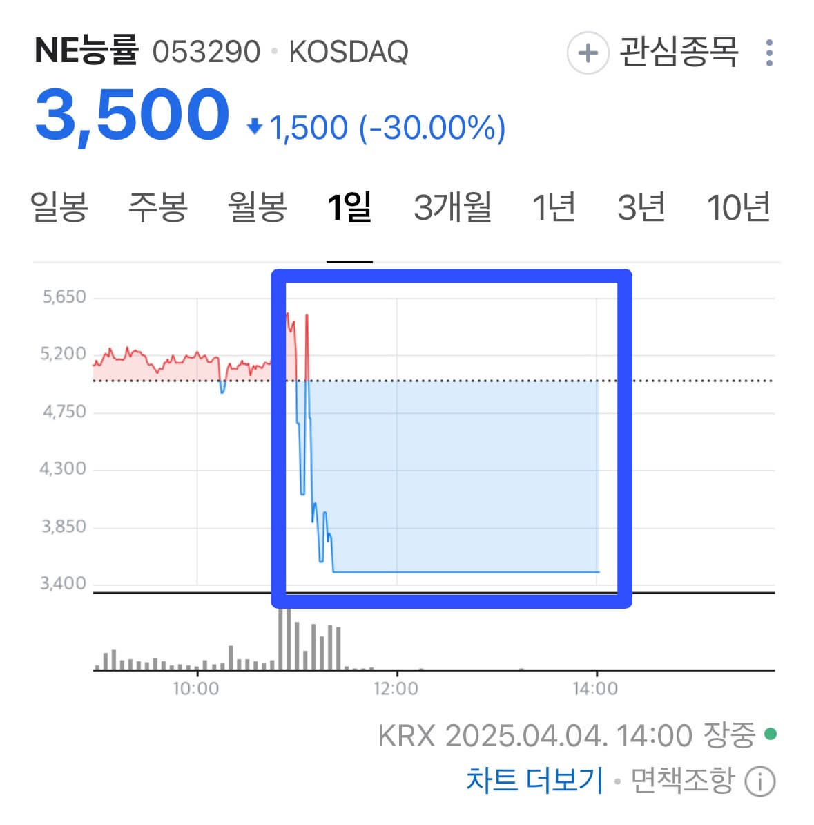 NE능률: 전일 대비 -30% 급락